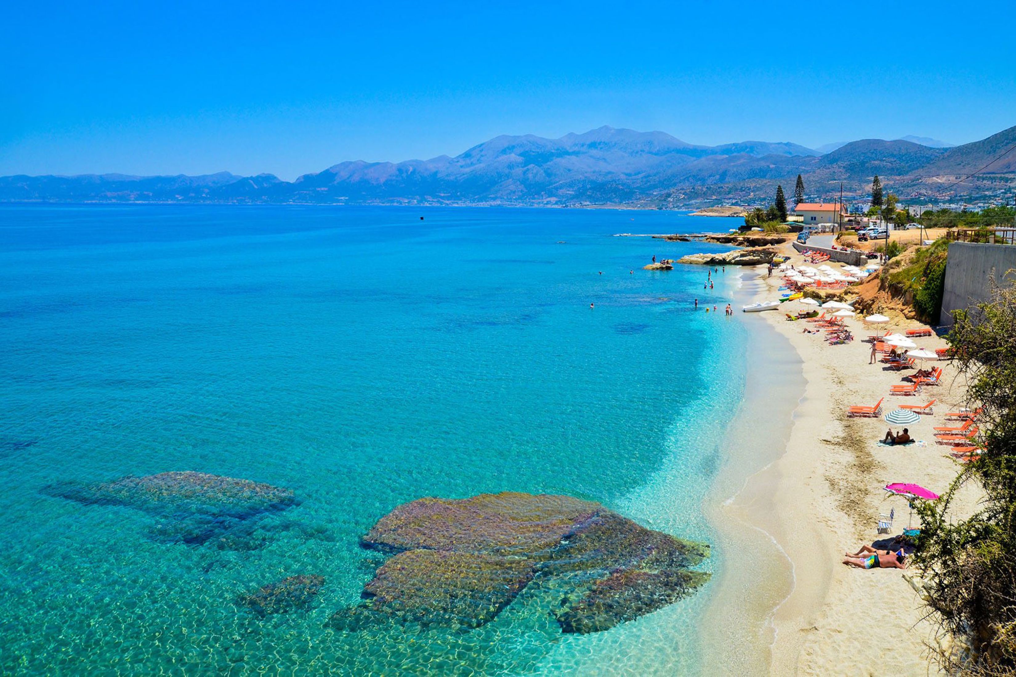 Just a short drive from the residence, Gournes Beach offers a peaceful and laid-back coastal experience. This beach features a mix of sand and pebbles, with clear, shallow waters ideal for swimming. Some parts are equipped with sunbeds and umbrellas, while others remain more untouched, making it a great choice for those who prefer a quieter spot.